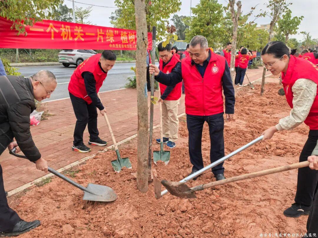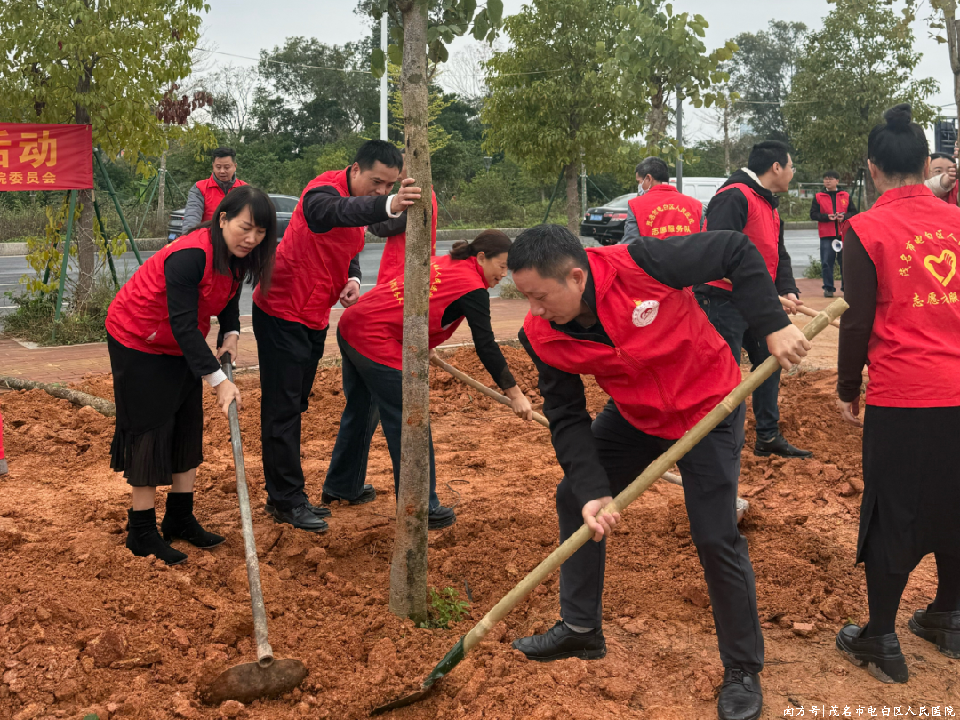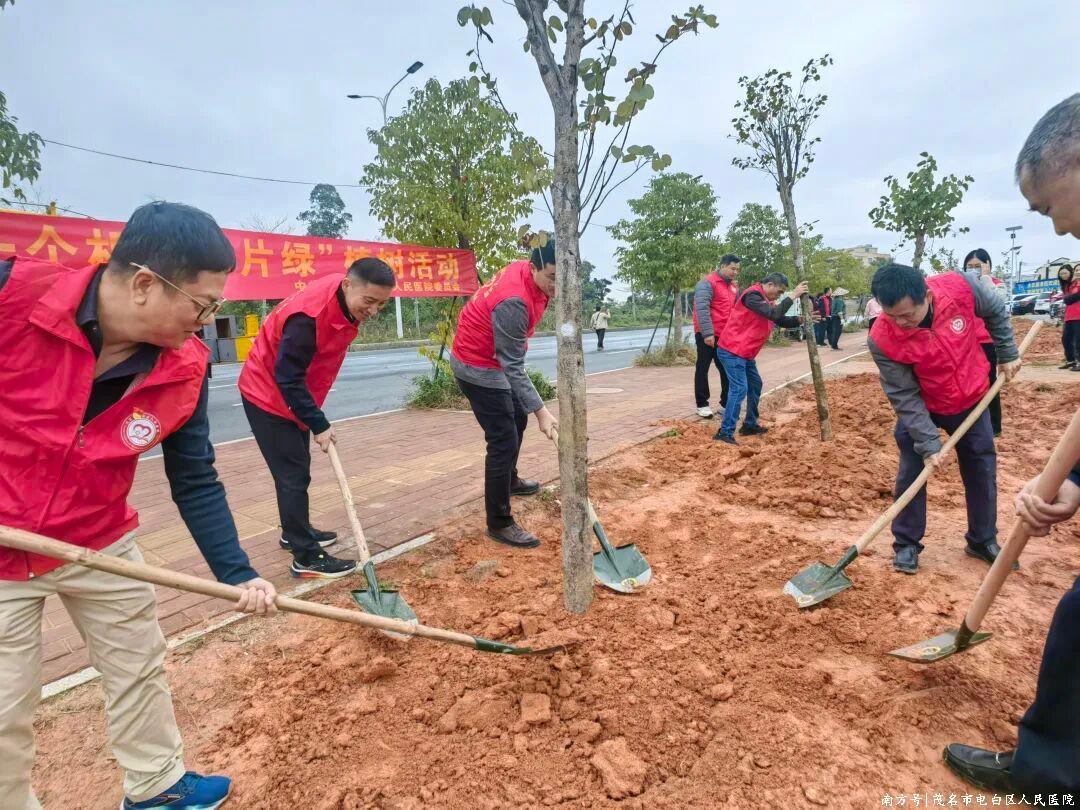春风拂绿野,党旗映初心。为深入贯彻落实“百千万工程”和绿美电白生态建设部署,扎实推进电白区直机关“先锋联基层”工程走深走实,3月11日上午,广东省人民医院粤西医院(茂名市电白区人民医院)党委紧扣“一个机关一片绿”主题,联合水东街道党工委,由医院党委副书记、院长肖进带队,组织领导班子、党员干部前往新城村开展义务植树活动,以实际行动植绿造绿,赋能乡村振兴。